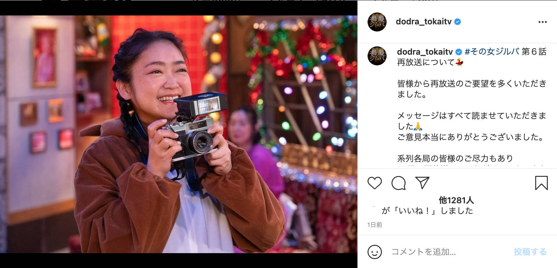 その女 ジルバ 地震 再放送-企画:市野直親(東海テレビ) 原作:「その女、ジルバ」(有間しのぶ、小学館「ビッグコミックス」刊) 脚本:吉田紀子 音楽:吉川慶/hal 監督:村上牧人/根本和政 プロデューサー:遠山圭介(東海テレビ)/松本圭右(東海テレビ)/雫石瑞穂(テレパック)/黒沢淳(テレパック 地震の影響で深夜放送となった『その女、ジルバ』第6話の再放送が決定 / 地域ごとに再放送日時が異なります 田端あんじ 21年2月18日 Tweet 東海テレビ制作のフジテレビ系ドラマ『 その女、ジルバ 』第6話の再放送が決定。 全国17局で放送されることに